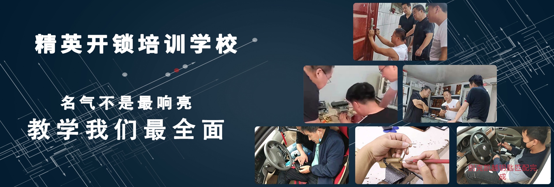 S精英開鎖培訓學校 歡迎參觀薊縣開鎖培訓學校網站!我們是正規開鎖培訓學校,是經工商注冊備案. 經勞動部門批準面向全國招生,提供開鎖技術培訓,本技校成立以來,本著“誠信,良心,用心”的原則方針。先后培育了全國各地有突出貢獻的優秀鎖匠,培育優秀道德鎖匠。本校主要從事開鎖學校培訓、開鎖技術培訓、薊州開鎖培訓班、汽車開鎖學校等培訓,本校才用1對1教學,奉客戶為上帝的原則去教學,精英開鎖技術學校設有專業的教室,完善的設備,本技校有技術老師8名,設有直營店面3家,學員畢業經技術堅定部門合格,發職業資格證書(鎖具修理工)全國通用。
